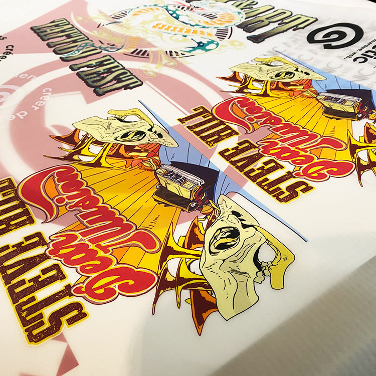 Nos équipements d'impression hautement spécialisés feront l'impression et applique la colle sur votre transfert.